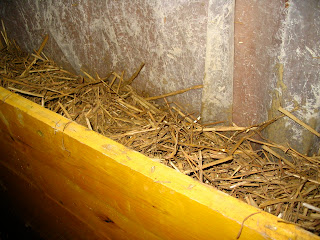 "Cozer" rolos de canas onde ficam as postas de madeira e enchimos com palha antes rebocar